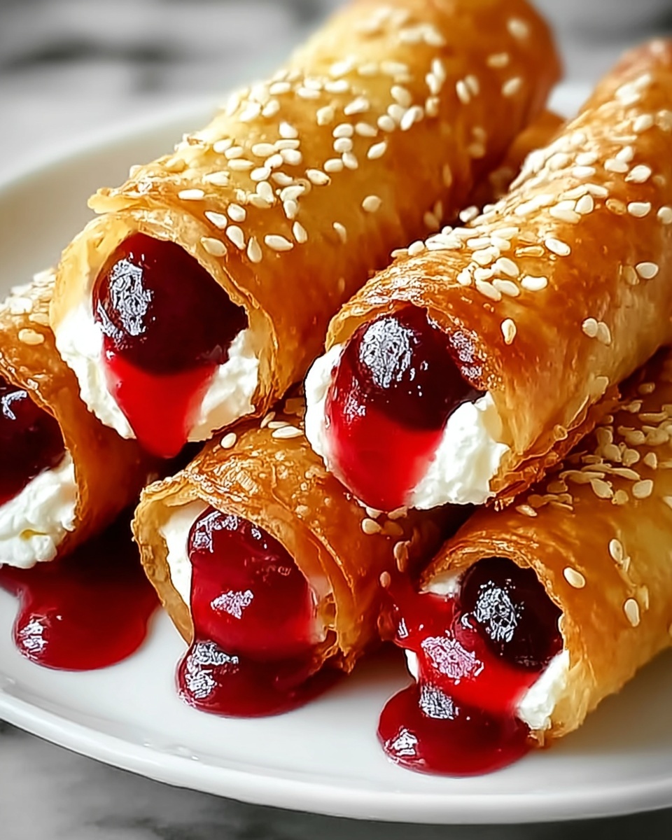 The best part about these egg rolls is how versatile they are when it comes to garnishing. A generous dusting of powdered sugar adds a lovely sweetness and pretty finish. For an extra touch, drizzle some warm cherry sauce or even a light lemon glaze over the top to elevate the flavors.