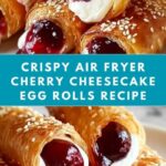 These Air Fryer Cherry Cheesecake Egg Rolls combine creamy cheesecake filling and sweet cherry pie filling wrapped in crispy egg roll wrappers. Ready in just 25 minutes, they are a fun, easy-to-make dessert with a golden, crunchy exterior and a deliciously gooey inside. Perfect for parties or a quick sweet treat without deep frying.
