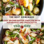 This Asparagus and Gnocchi in Brown Butter Sauce recipe features tender gnocchi and roasted asparagus tossed in a nutty brown butter sauce infused with shallots, sage, and a splash of fresh lemon juice. Crispy prosciutto and Parmesan cheese add a delightful savory finish to this quick and elegant Italian-inspired dish, perfect for a comforting weeknight meal.