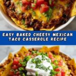 This Baked Cheesy Mexican Taco Casserole is a flavorful, hearty dish perfect for family dinners or gatherings. Layers of seasoned ground beef, vegetables, and melted cheddar and Monterey Jack cheeses come together with crunchy tortilla chips and zesty salsa, creating a deliciously comforting casserole with a Mexican flair.