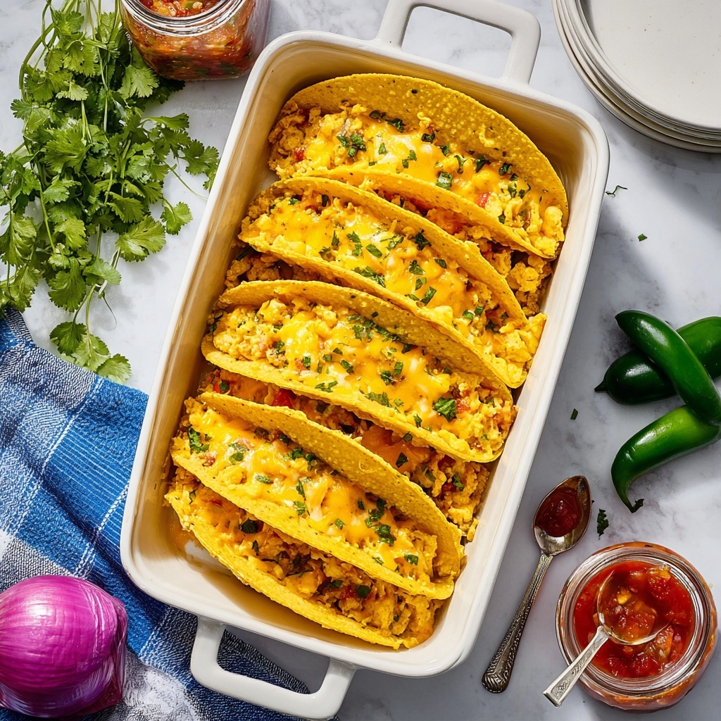 Start off by getting your oven warmed to 375°F (190°C). Spraying a 9×13-inch baking dish with nonstick cooking spray will ensure your tacos stay perfectly in place and make cleanup a breeze. This step sets the stage for the baking magic and crispy shells you’re looking forward to.