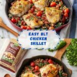 This flavorful BLT Chicken and Rice Skillet combines the classic bacon, lettuce, and tomato concept with tender chicken breasts, wholesome quinoa and brown rice, fresh baby spinach, and cherry tomatoes, all cooked together in one skillet for a delicious and easy meal perfect for busy weeknights.
