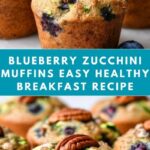 Delicious and moist Blueberry Zucchini Muffins made with fresh zucchini, juicy blueberries, and crunchy pecans. These wholesome muffins are lightly sweetened with white and brown sugar, flavored with cinnamon and vanilla, and perfect for breakfast or a healthy snack.