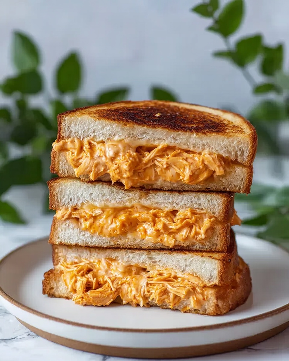This Buffalo Chicken Grilled Cheese recipe combines spicy buffalo chicken with creamy ranch and melty sharp cheddar cheese, all sandwiched between buttery toasted bread. Perfect for a comforting lunch or dinner, it offers a flavorful twist on classic grilled cheese with a delicious buffalo chicken filling.