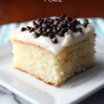Spread the creamy filling evenly over the soaked cake, covering every inch beautifully. Finish by sprinkling mini chocolate chips across the top, followed by a light dusting of powdered sugar for that picture-perfect finish.