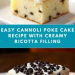Try serving your Cannoli Poke Cake Recipe in clear glass dishes layered with extra filling and chocolate chips for a fun trifle version. Alternatively, cut into bite-sized squares and place on elegant dessert trays for a festive gathering or potluck.