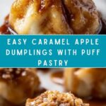 Delight in these warm, golden Caramel Apple Dumplings featuring tender Granny Smith apples wrapped in flaky puff pastry, filled with a spiced brown sugar blend and butter, baked to perfection and drizzled with rich caramel sauce. Perfect for a cozy fall dessert served with vanilla ice cream.