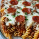 This Cheesy Beef and Pepperoni Pasta Bake is a hearty and flavorful Italian-inspired casserole combining al dente rotini pasta, savory ground beef, zesty pepperoni, and a blend of mozzarella and cheddar cheeses baked to melted perfection. Infused with marinara sauce and Italian seasoning, this dish is a comforting weeknight dinner that is easy to prepare and sure to please the whole family.