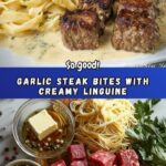 Cheesy Garlic Steak Bites over Creamy Linguine Pasta Recipe
