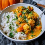 A vibrant and comforting Thai-inspired chicken and pumpkin curry that combines tender chicken breast, sweet pumpkin, and fragrant spices in a rich coconut milk sauce. This easy-to-make curry is perfect for a cozy dinner and is served best over steamed rice, garnished with fresh cilantro for added brightness.