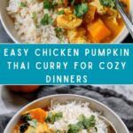 The magic of a great curry doesn’t stop at cooking. Garnishing your Chicken and Pumpkin Thai Curry Recipe with chopped fresh cilantro adds a burst of herbal brightness. You can also consider thinly sliced red chili or a squeeze of lime juice for an extra pop of color and zest.