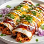 This Chicken Enchiladas recipe is a flavorful and hearty Mexican-inspired dish featuring tender shredded chicken, black beans, green chiles, and a blend of spices wrapped in flour tortillas, smothered in enchilada sauce and melted cheese. Perfect for a family dinner, these enchiladas bake to bubbly, cheesy perfection and can be served with fresh toppings like cilantro, sour cream, and avocado.