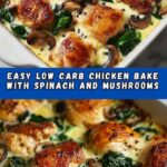 Since this Chicken, Spinach, and Mushroom Low Carb Oven Dish Recipe is already packed with flavor and nutrition, pairing it with a simple side like steamed asparagus, garlic-roasted cauliflower, or a light cucumber salad keeps the meal balanced without overshadowing the main event.