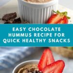 A delicious and creamy Chocolate Hummus made with great northern beans, peanut butter, and cocoa powder, sweetened with maple syrup. This versatile and healthy spread is perfect for dipping fruits, spreading on toast, or enjoying with crackers.
