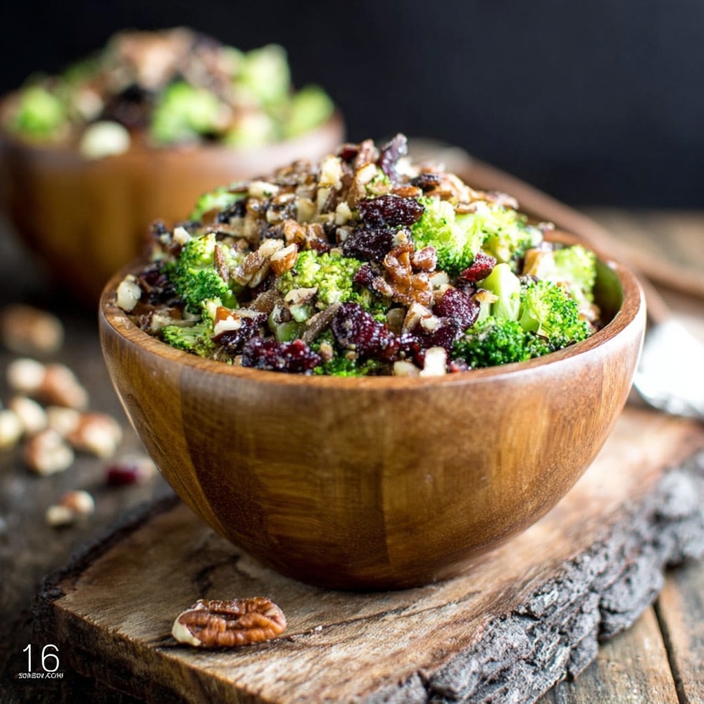 - Dried cranberries (1/4 cup): Sweet and tart little gems that contrast with the savory walnuts and broccoli crisps.