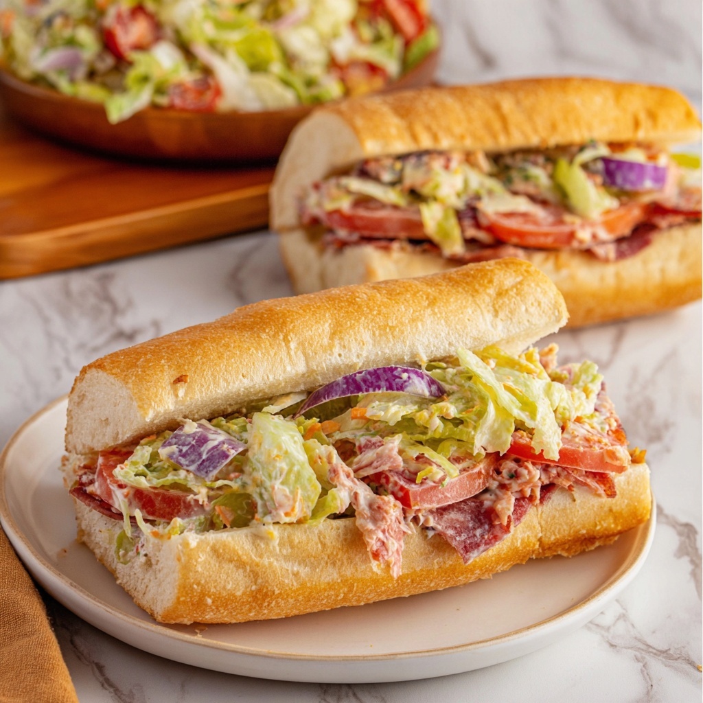 Delight in the bold and savory flavors of Chopped Italian Sandwiches, where layers of salami, pepperoni, turkey breast, fresh veggies, and provolone cheese come together in a tangy mayonnaise-based filling. Perfectly melted and toasted in the oven, these sandwiches offer a satisfying and easy-to-prepare meal ideal for lunch or casual gatherings.