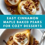 Delicious Cinnamon Maple Baked Pears are a warm, comforting dessert perfect for fall or any cozy occasion. Ripe pears are halved and baked with a luscious drizzle of maple syrup, fragrant cinnamon and nutmeg, crunchy nuts, and a touch of butter and vanilla for a rich, melt-in-your-mouth treat. Serve them warm with whipped cream or vanilla ice cream for an extra indulgence.