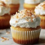 Before serving, top each cupcake with a dollop of whipped cream and a sprinkling of toasted shredded coconut for that irresistible finishing touch.