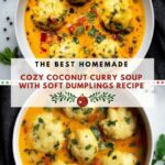 This Coconut Curry Soup with Dumplings is a comforting and flavorful dish combining aromatic spices, creamy coconut milk, and tender vegetables with soft, homemade dumplings. Perfect for a cozy meal, this soup balances the warmth of curry and turmeric with fresh spinach and a hint of soy sauce, creating a deliciously hearty and satisfying experience.