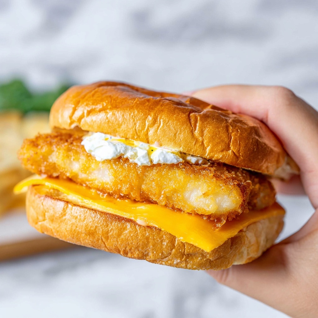 Enjoy a delicious homemade Copycat Filet O Fish sandwich featuring crispy fried cod filets, melty American cheese, and a zesty homemade tartar sauce, all nestled in soft brioche or potato buns. This recipe replicates the classic fast-food favorite with fresh ingredients and a crispy, golden coating perfect for a satisfying meal.