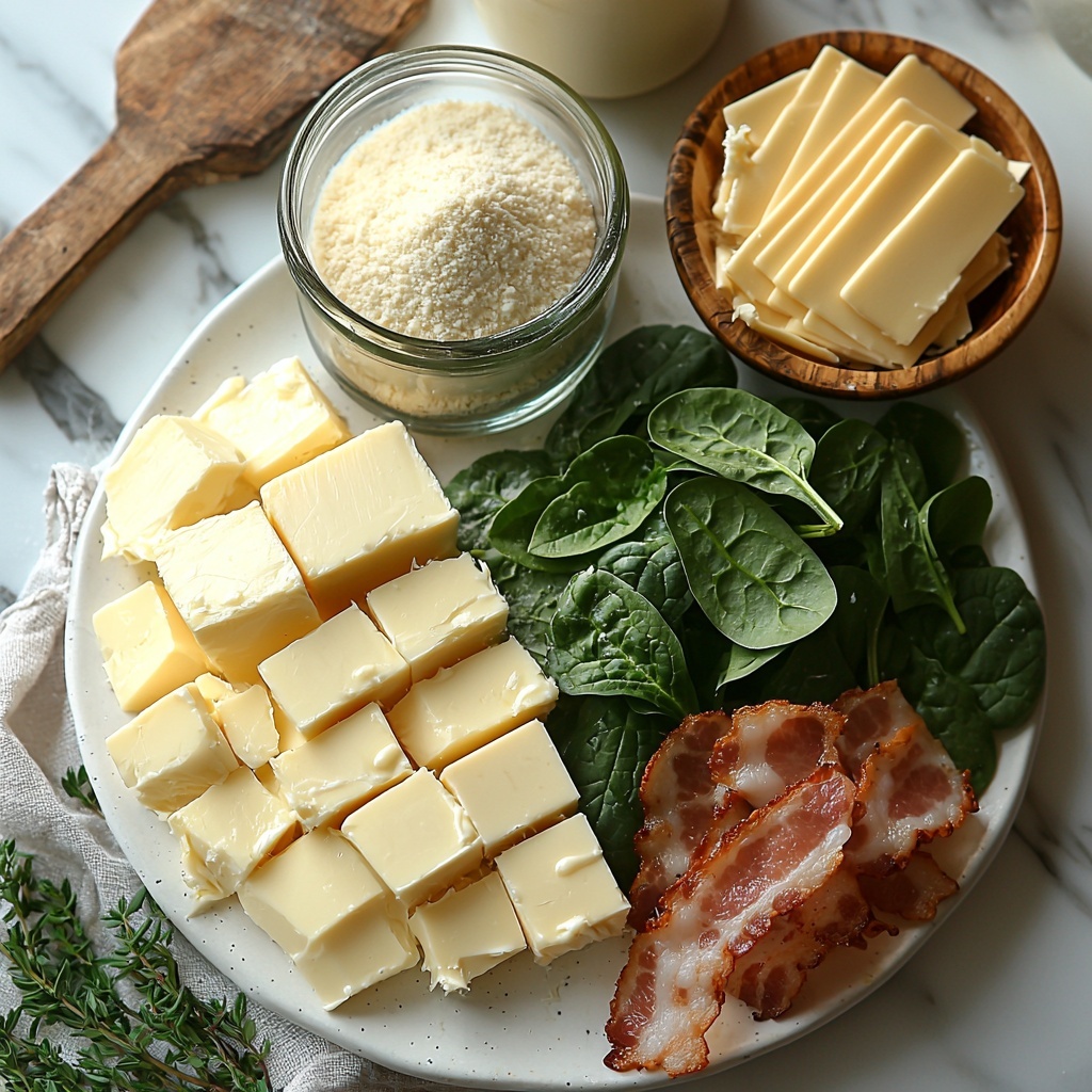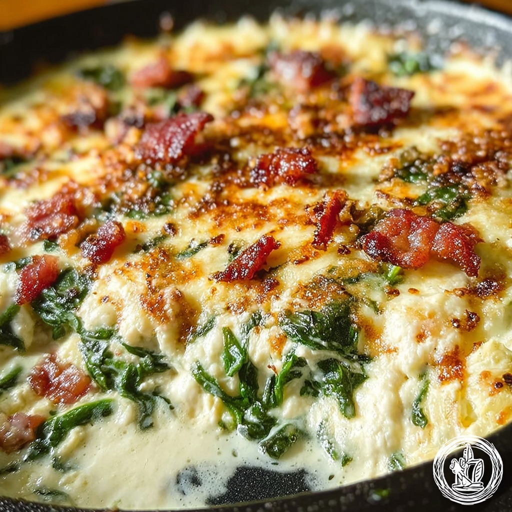 If you want to impress guests visually, serve individual portions by scooping this spinach bake into small ramekins and topping each with bacon. Alternatively, try layering it into a shallow casserole dish with thinly sliced tomatoes for a colorful twist before baking.