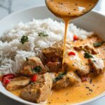 A rich and comforting Creamy Paprika Chicken served with tender white rice, simmered in a velvety sauce infused with smoky and sweet paprika for a flavorful, home-style meal perfect for weeknight dinners.