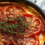 This Creamy Roasted Tomato and Garlic Soup is a comforting, flavorful dish perfect for chilly days. Ripe Roma tomatoes and garlic are roasted to bring out their natural sweetness and depth, then blended into a smooth, velvety soup enriched with a touch of cream. The subtle seasoning of basil and optional red pepper flakes adds a lovely herbal and mild heat dimension, making it a delicious vegetarian option that’s easy to prepare.