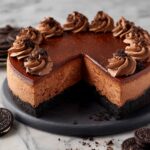 This rich and creamy Chocolate Cheesecake recipe combines a classic Oreo cookie crust with a luscious chocolate-infused cream cheese filling, finished with a smooth chocolate ganache topping. Perfect for any chocolate lover looking for an indulgent dessert that’s sure to impress.
