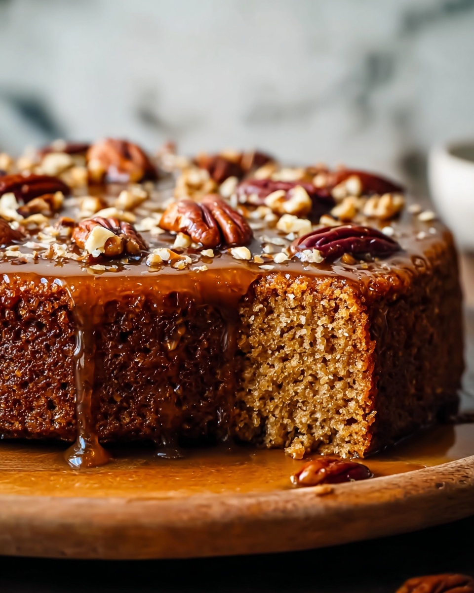Once cooled, sprinkle more chopped walnuts on top for that inviting finish, or drizzle a little extra maple syrup for added sweetness and shine. This last flourish turns your homemade cake into a true showstopper.