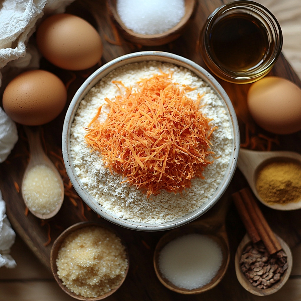 - 2 cups shredded carrots: Fresh and sweet, they provide natural moisture and texture.
