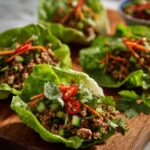 Hosting a casual get-together? Lay out a platter with chicken larb, lettuce leaves, various garnishes, and sides so guests can customize their own wraps. Alternatively, serve the larb mixture over a bed of shredded cabbage or in crunchy rice paper for a playful twist on this classic. No matter how you plate it, the vibrant colors and textures make the Easy Chicken Larb Lettuce Wraps Recipe a feast for the eyes as well as the palate.