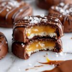 These Easy Coconut Caramel Samoa Stuffed Cookies combine a rich, fudgy cocoa cookie with a gooey caramel and shredded coconut center, inspired by the beloved Samoa cookie. With a soft, buttery dough wrapped around a sweet, sticky filling and topped with a luscious chocolate drizzle, these cookies are a delightful treat perfect for any occasion.