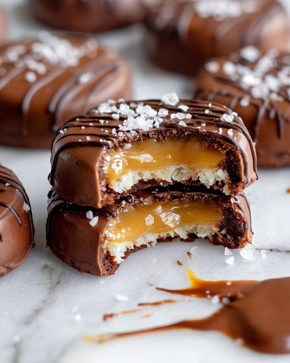 Want to elevate your Easy Coconut Caramel Samoa Stuffed Cookies Recipe even more? Try sprinkling a pinch of toasted coconut flakes or flaky sea salt over the chocolate drizzle once it’s still wet. These small touches offer extra texture and a burst of complementary flavor that makes each bite even more special.