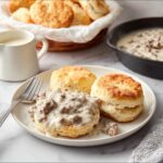 Once your gravy reaches a thick, creamy consistency, it’s ready to serve. Spoon it generously over the hot, freshly baked biscuits and enjoy immediately for the ultimate comforting breakfast experience.