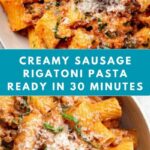 This Easy Sausage Rigatoni recipe combines perfectly cooked rigatoni pasta with a savory Italian sausage tomato cream sauce. Ready in just 30 minutes, it’s a comforting, hearty dish perfect for weeknight dinners. The creamy tomato sauce enriched with fresh basil and parmesan cheese makes for an irresistible, flavorful meal the whole family will enjoy.