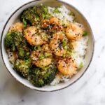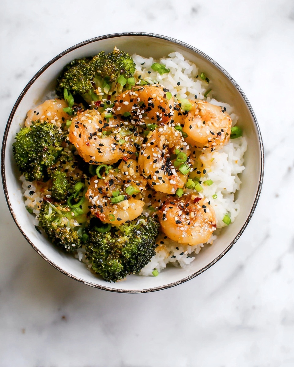 5. Serve: Serve the shrimp and broccoli mixture over the cooked jasmine rice. Garnish with sesame seeds and scallions to taste. Enjoy your flavorful and nutritious bowl!