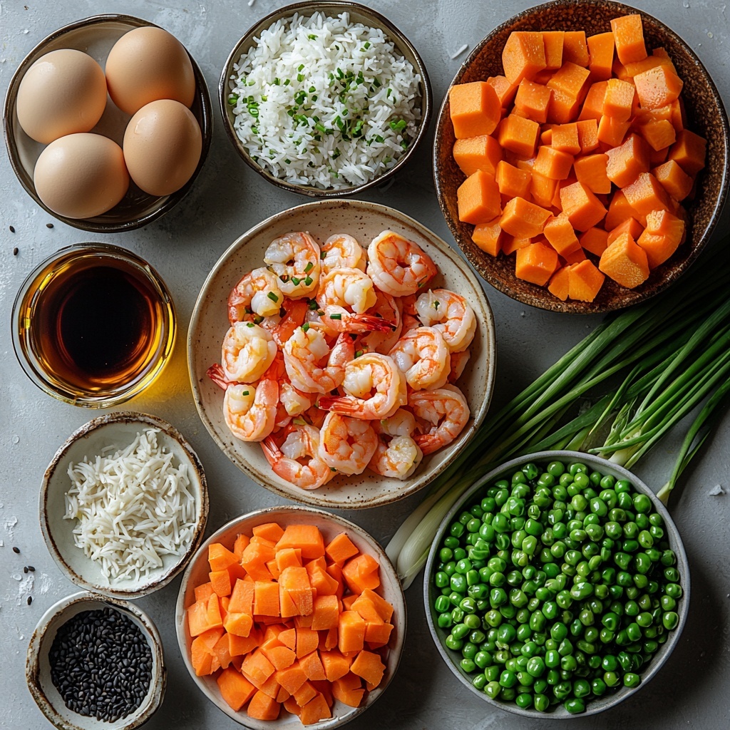 Gathering simple, fresh, and pantry-friendly ingredients is the key to making this dish shine. Each element plays its part to create the beautiful balance of taste, texture, and color that defines an unforgettable shrimp fried rice.