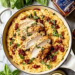This Easy Risotto with Sun-Dried Tomatoes, Basil, and Chicken is a comforting and flavorful dish perfect for a quick weeknight dinner. Tender chicken breasts are pan-seared to golden perfection and served over creamy, cheesy risotto studded with sun-dried tomatoes and fresh basil. The combination of white wine, garlic, and Italian seasonings elevates each bite for a delicious, restaurant-quality meal made in under 40 minutes.