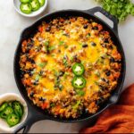Just before serving, sprinkle the dish with chopped fresh cilantro and add sliced jalapeno peppers if you want a spicy thrill. This final touch adds a fresh burst of brightness and a pop of heat that elevates the Easy Taco Skillet Recipe to a next-level experience. Now it’s ready to be enjoyed!