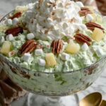 A classic and easy Watergate Salad featuring a creamy mixture of pistachio pudding, crushed pineapple, mini marshmallows, pecans, and Cool Whip. This no-cook dessert salad is refreshing, fluffy, and perfect for potlucks or family gatherings.