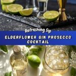 A refreshing Elderflower, Gin and Prosecco Cocktail that combines floral elderflower liqueur, botanical gin, and bubbly Prosecco with a touch of zesty lime and a sugared rim for a delightful sparkling drink, perfect for any celebration or relaxing moment.