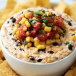 This Fiesta Ranch Dip is a quick and flavorful party favorite that combines creamy sour cream with zesty ranch seasoning, sweet corn, hearty black beans, seasoned diced tomatoes, and sharp cheddar cheese. Perfect for serving with chips or fresh veggies, this no-cook dip is easy to prepare in just 10 minutes and adds a vibrant, crowd-pleasing touch to any gathering.