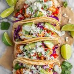 These delicious Fish Tacos feature perfectly seasoned and baked tilapia, topped with a crisp cabbage slaw, creamy avocado slices, and a tangy homemade fish taco sauce. Served on toasted white corn tortillas and finished with a sprinkle of cotija cheese and fresh lime wedges, these tacos offer a vibrant and satisfying meal perfect for any occasion.