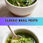 Both work well for making this Fresh Basil Pesto Recipe. A food processor typically offers more control over texture, but a blender or immersion blender will also deliver fantastic results.