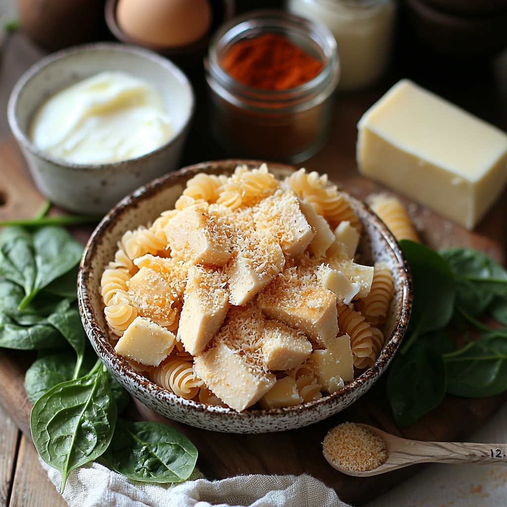 This recipe relies on a handful of simple but essential ingredients that create a spectacular taste experience. Each element plays a key role, from the crispy chicken coating’s crunch to the spice-kissed Alfredo sauce and the creamy spinach’s vibrant color and texture.