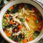 Reheat the soup gently over medium-low heat on the stove, stirring occasionally to prevent sticking. If the noodles absorb too much liquid, add a splash of chicken broth or water to refresh the soup’s consistency before serving.