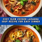 This Healthy Slow Cooker Lasagna Soup offers a delicious and comforting twist on traditional lasagna, made easy by slow cooking ground turkey or lean beef with tomatoes, broth, herbs, spinach, and pasta. Topped with creamy ricotta and melted mozzarella, it’s a warm, hearty meal perfect for busy days.
