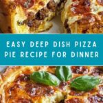 This Hearty Pizza Pie features a homemade crust filled with a savory blend of ground beef or Italian sausage, pizza sauce, and a blend of mozzarella and cheddar cheeses, topped with mushrooms, peppers, and pepperoni. Baked to golden perfection, it’s a satisfying deep-dish pizza perfect for a family meal or gathering.