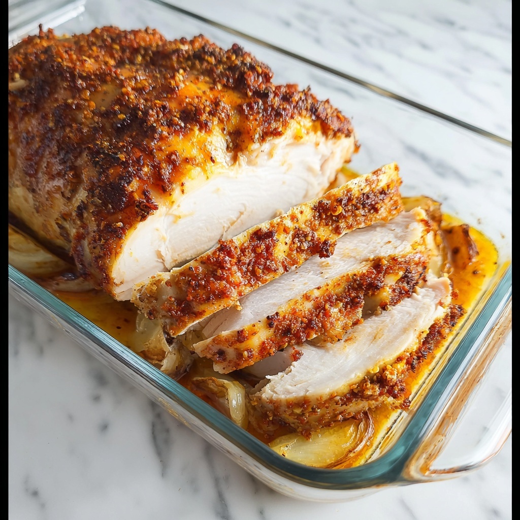 This roasted turkey breast recipe offers a flavorful and tender turkey cooked to perfection in the oven. Coated with a savory butter and spice blend, and roasted alongside aromatic onions, lemons, and garlic, this dish is ideal for a family meal or holiday feast.