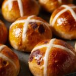 Traditional Hot Cross Buns made with warm milk, aromatic spices, currants or raisins, and finished with a sweet vanilla icing cross. Perfectly soft and spiced, these classic buns are ideal for Easter or any cozy brunch occasion.
